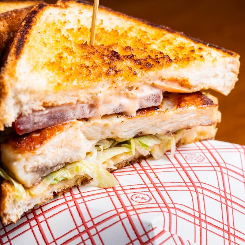Pepper jack cheese, caramelized onion, crispy jalapeno, sweet baby rays on Texas toast.